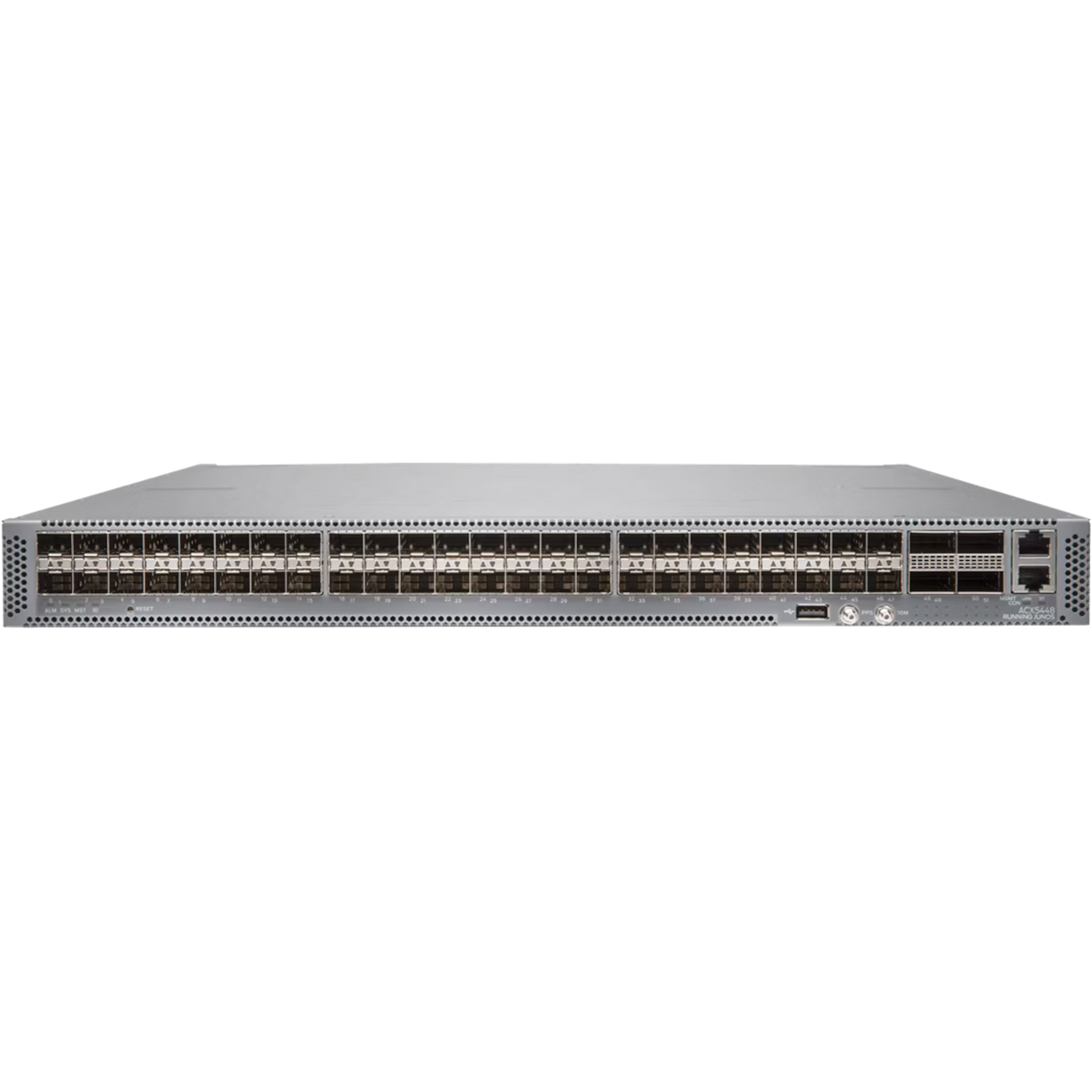 ACX5448 MACSec, 44 MACSec capable SFP+/SFP ports , 6 QSFP28 ports, redundant fans and DC power supplies; Front to Back Airflow; Limited JUNOS only, Feature Right to use must be ordered separately